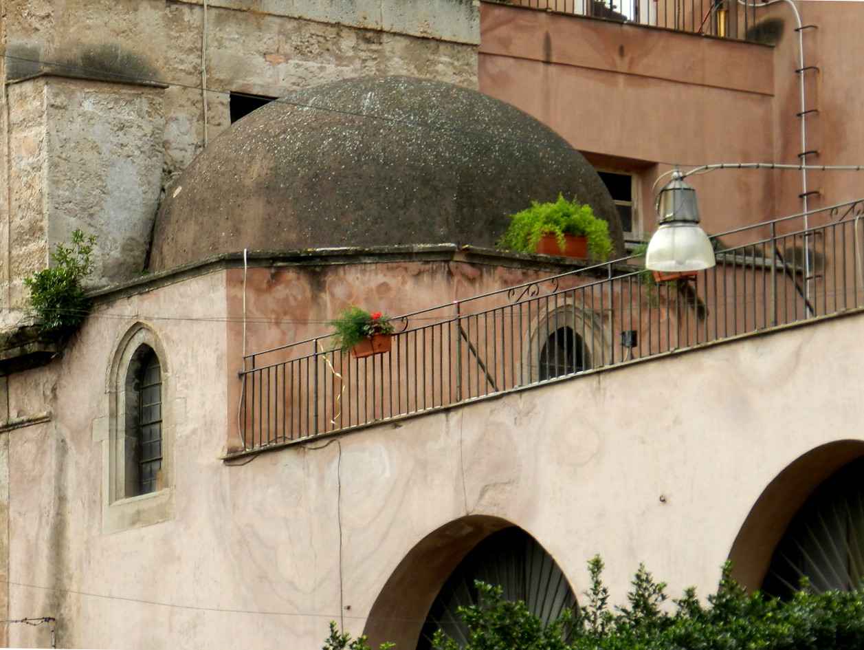 La copertura semisferica della Cappella di Sant'Oliva. Il Tempietto antecedente alla chiesa, forse risale all'epoca delle dominazioni saracene. All'interno, in corrispondenza della cupoletta, esiste un pozzo nel quale, secondo tradizione, nel V secolo sarebbe stata tumulata la salma di Sant'Oliva, trafugata da cristiani palermitani in quel di Tunisi ove la vergine venne uccisa dopo aver subito il martirio. Da quel pozzo, si narra, sgorgò dell'acqua ritenuta miracolosa dai devoti.